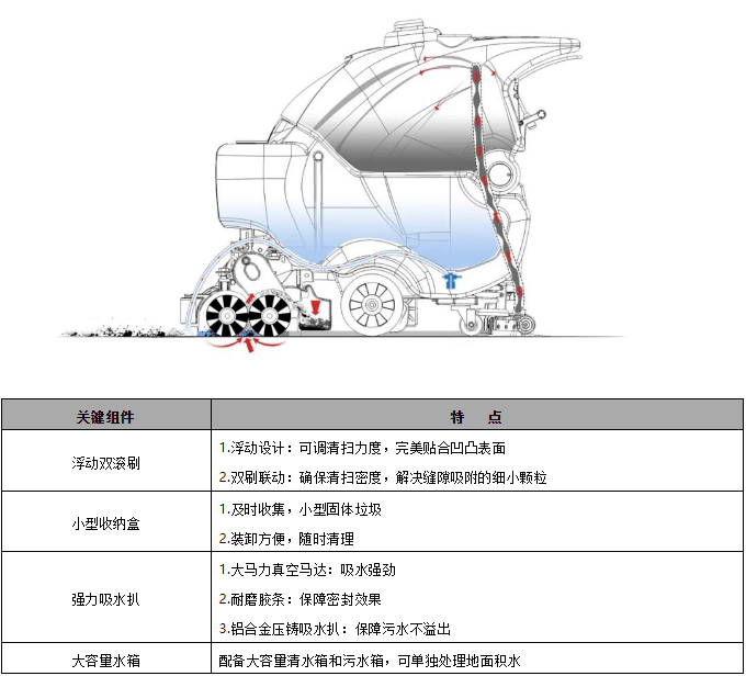 作為洗地功能和掃地功能的整合機型,洗掃一體機可以覆蓋洗地機和掃地機的很大一部分清潔場景。高美洗掃一體機,擁有浮動滾刷、小型收納盒、強力吸水扒、大容量水箱等優(yōu)勢,可以應(yīng)對各種類型頑固污垢的清潔作業(yè)。
