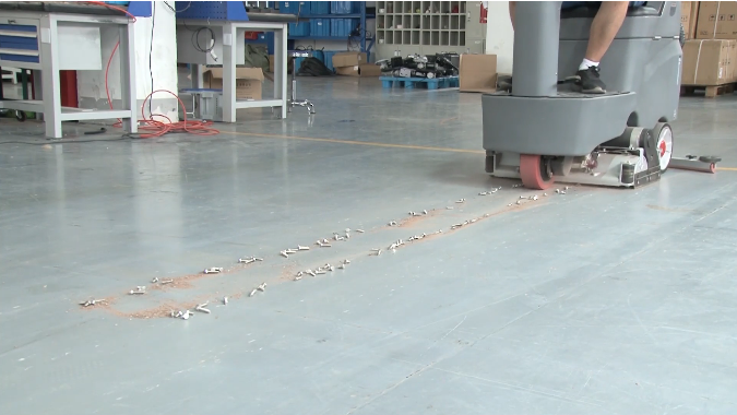工廠加工車間,散落的金屬顆粒、遺落的螺絲等,重量和硬度都很大,一般的清掃方式會很吃力。