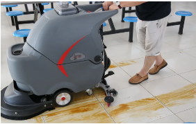 對于地面的嚴(yán)重油污,只要在洗地機(jī)清水箱加入一定比例的清潔劑,就可以有效除去油污,快速潔凈。