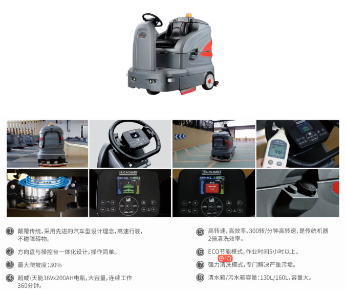 經(jīng)典產(chǎn)品,匯聚目光。作為在中部地區(qū)舉辦的一場(chǎng)行業(yè)聚會(huì),高美給予了高度的重視,攜小型手推式、小型駕駛式、大型駕駛式洗地機(jī),以及商業(yè)機(jī)等多款經(jīng)典機(jī)型登場(chǎng),吸引了眾多觀眾前來參觀咨詢。