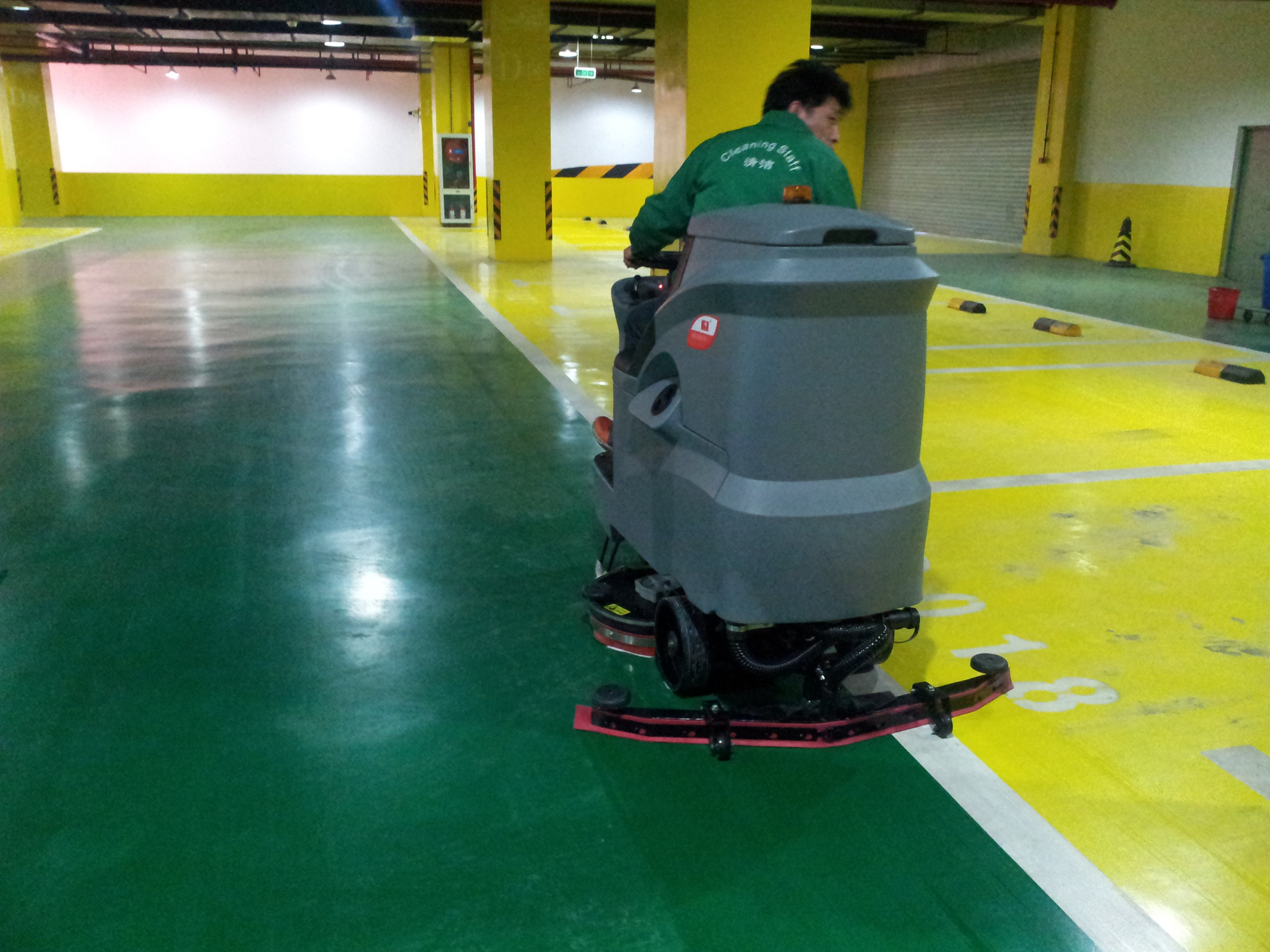而大型駕駛式洗地機(jī)之所以被廣泛應(yīng)用,除了每小時(shí)5000-8000平地面的高效率以外,還有就是它的續(xù)航時(shí)間,充一次電可連續(xù)使用4-5H,清洗寬度達(dá)到900mm,設(shè)有140-150L的大容量清水/污水箱,兩個(gè)大刷盤能將地面的污漬快速清理干凈。