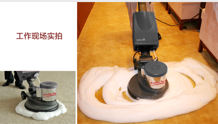 干泡清洗地毯,能晶面處理石材,還能洗地、起蠟、打磨等的多功能刷地機,適合快捷酒店、會所等地毯和石材都有的場所,以及保潔公司。