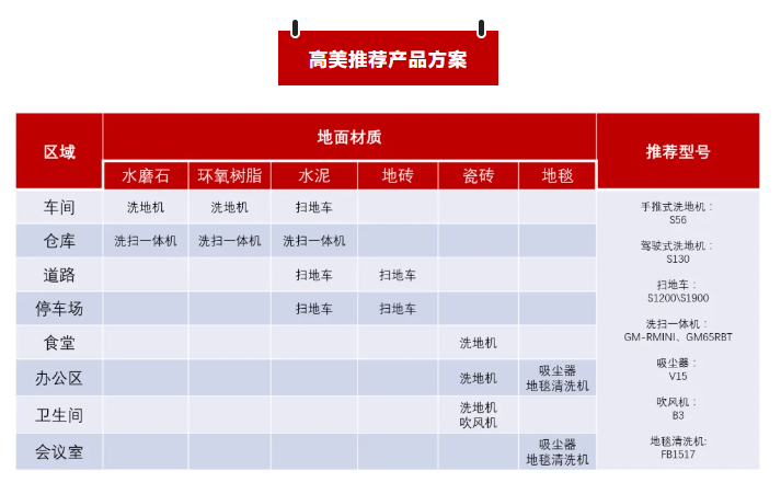 智慧清潔高端產(chǎn)品提供高效清潔作業(yè),智慧清潔管理系統(tǒng)提供科學(xué)管理方案,智慧清潔體驗(yàn)館提供品質(zhì)服務(wù)支持,高美智慧清潔體驗(yàn)館的“三駕馬車”為工廠保潔管理提供了全方位的方案。